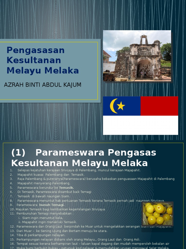 Pengasasan Kesultanan Melayu Melaka Pptx Azrah Pdf