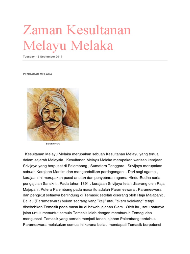 . Parameswara ialah putera raja dari. Baca versi flipbook dari PENGASAS KESULTANAN MELAYU MELAKA. PENGASASAN KESULTANAN MELAYU MELAKA.